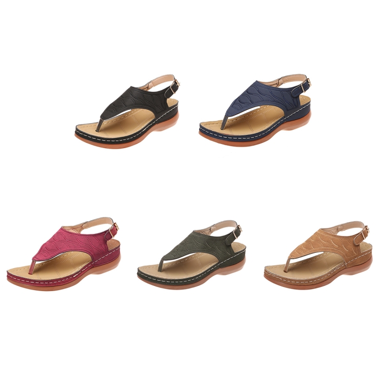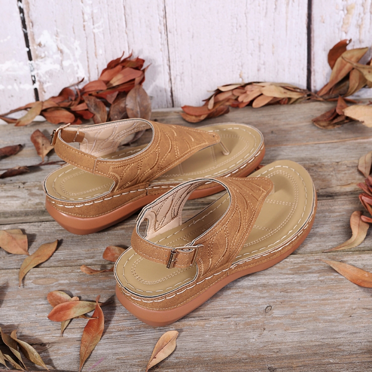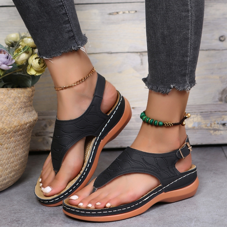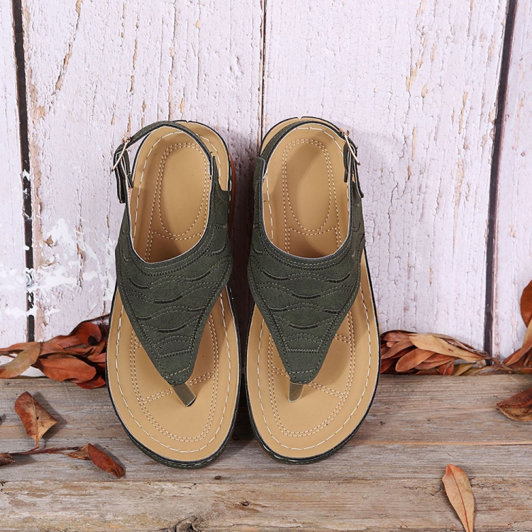 PU Leather Flip Flop Sandals Roman Style Adjustable Strap Sandals