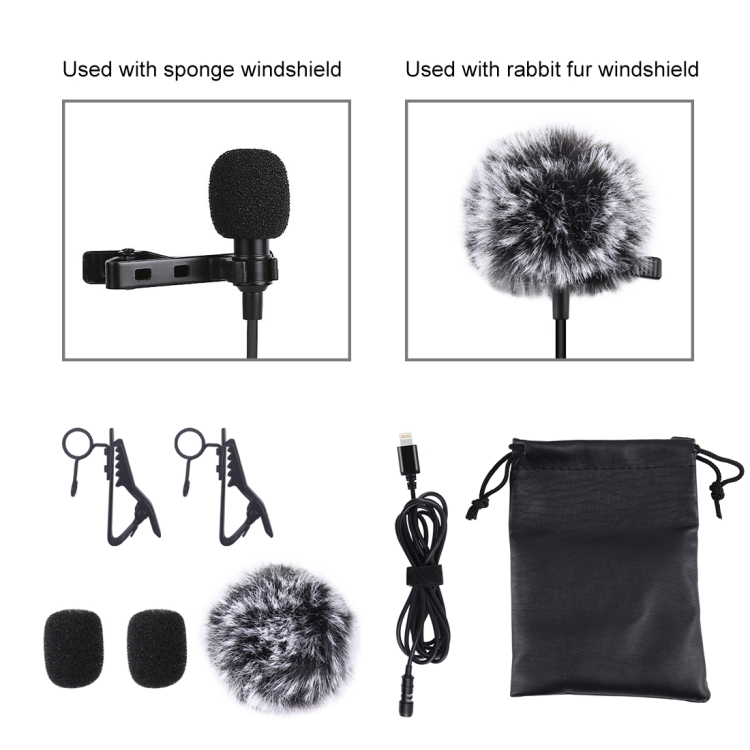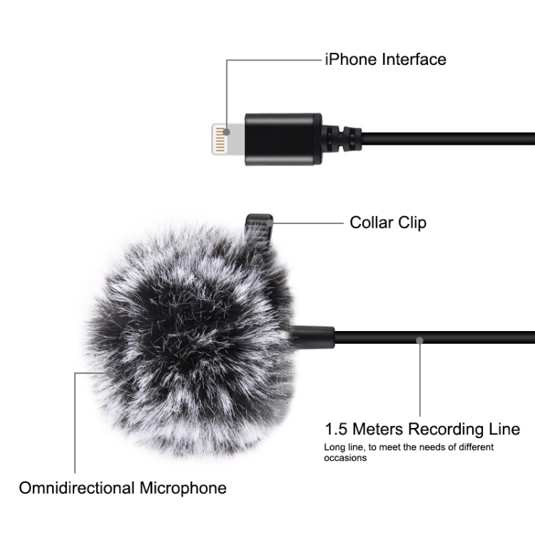 PULUZ 1.5m 8 Pin Jack Lavalier Wired Condenser Recording Microphone