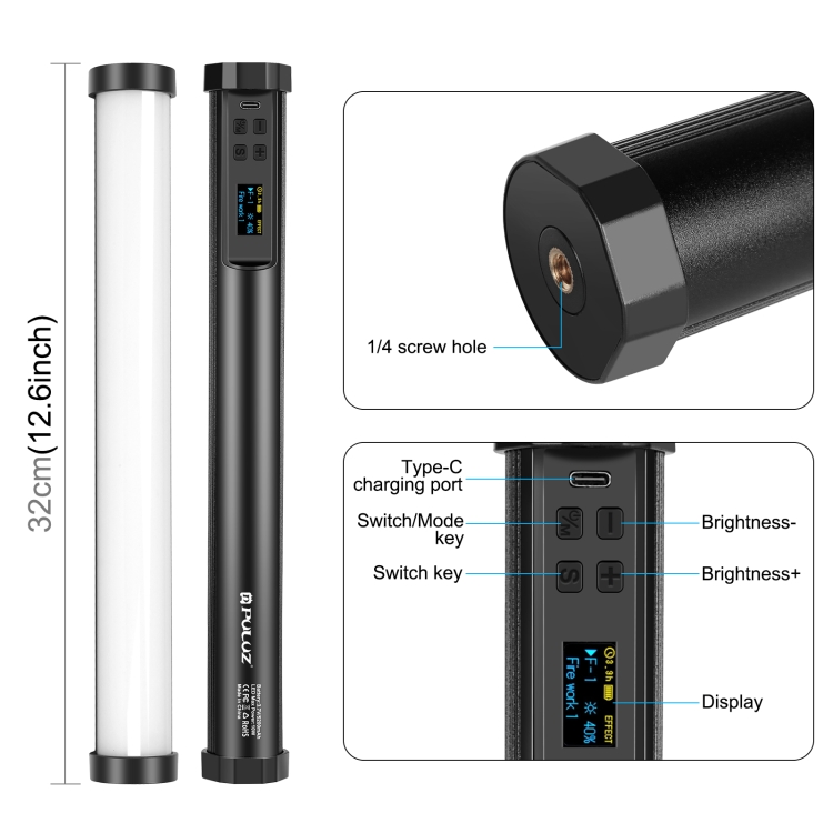 PULUZ 135 LEDs Photo Handheld Stick Light Full Color RGB Fill Light