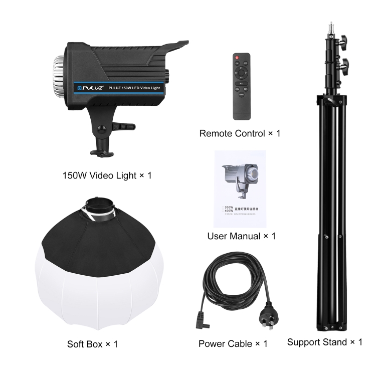 PULUZ 220V 150W 3200K-5600K Studio Video Light + 2.8m Light Holder + 65cm Foldable Lantern Softbox Photography Kit