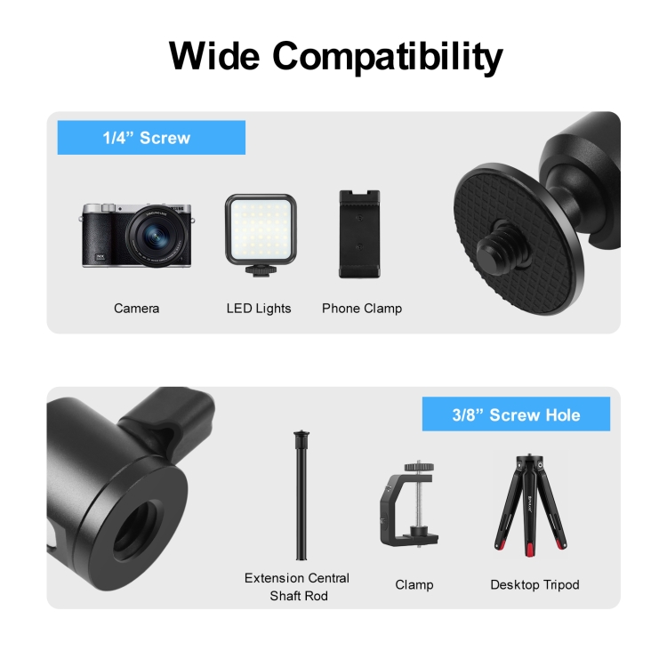 | Option | Metal Tripod Ball Head, 360 Panorama (Red), Mini 180 Degree Ball Head(Red), Mini 180 Degree Ball Head(Silver), Dual Cold Shoes, Single Cold Shoe, 360 Panorama, 1/4 inch Inner Screw, 3/8 inch Inner Screw, 1/4 inch Outer Screw, 3/8 inch Outer Screw, YT040 X4 |