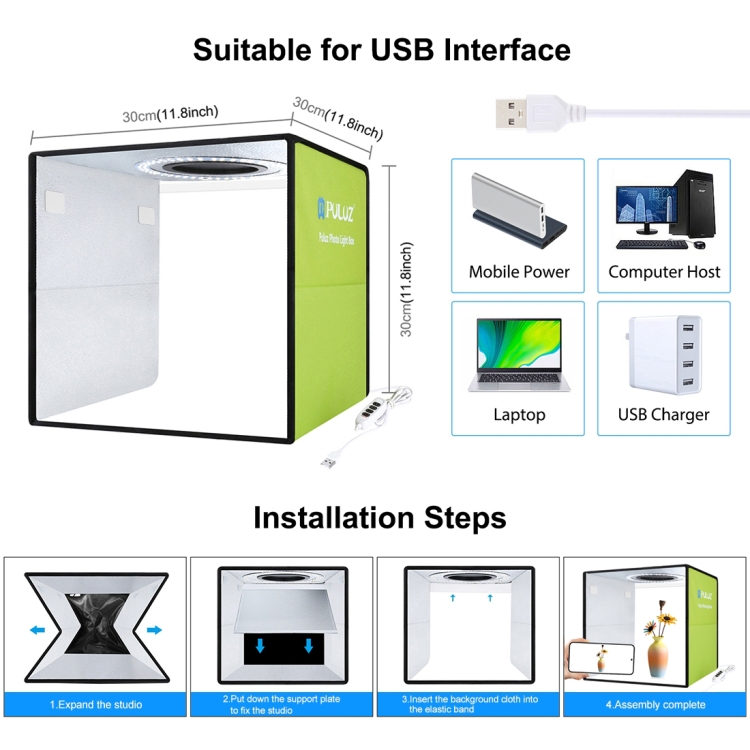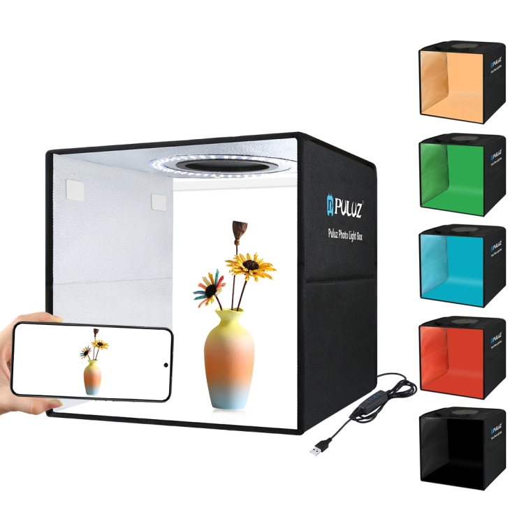 PULUZ 30cm Folding High 97 CRI Ring Light Photo Lighting Studio Shooting Tent Box Kit with 6 Colors Backdrops (Black, White, Orange, Red, Green, Blue), Unfold Size: 30cm x 30cm x 30cm