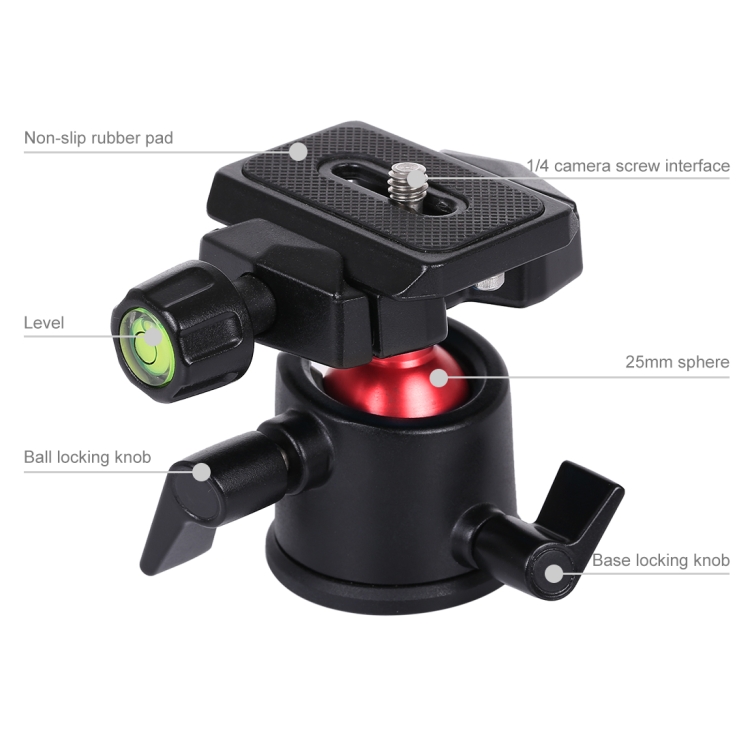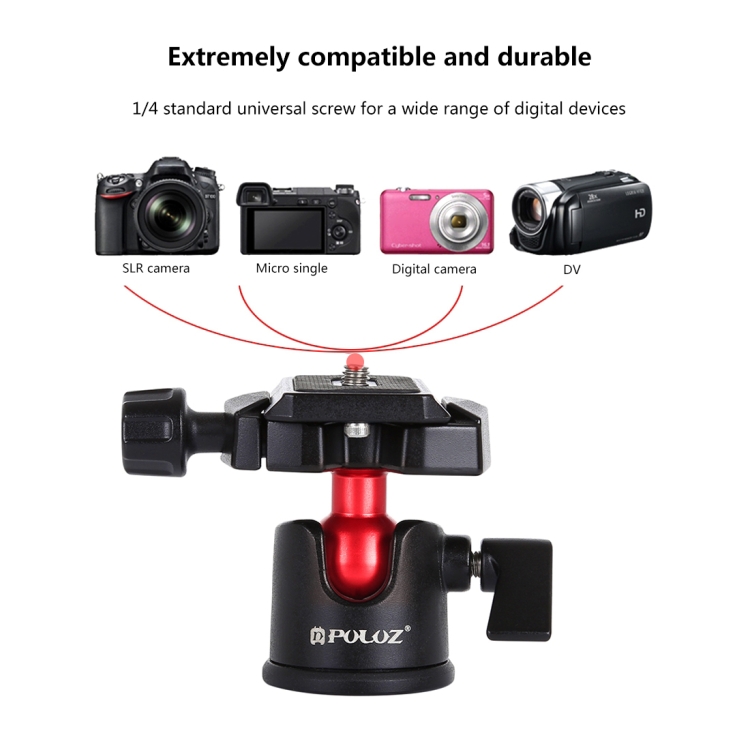 PULUZ 360 Degree Rotation Panoramic Metal Ball Head with Quick Release Plate for DSLR & Digital Cameras