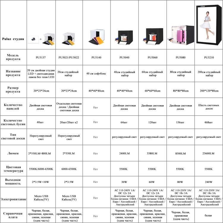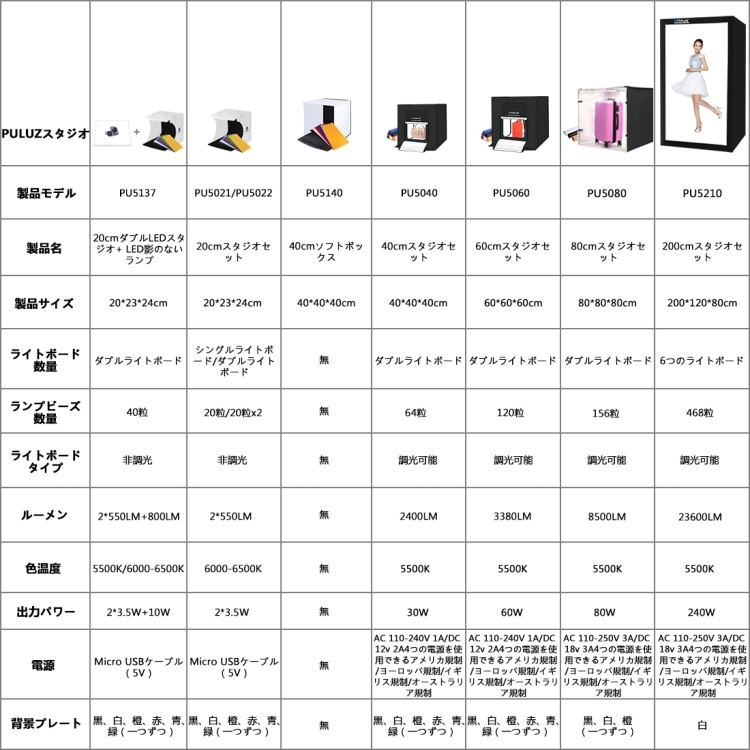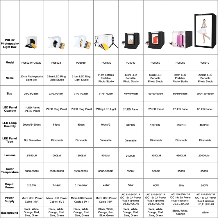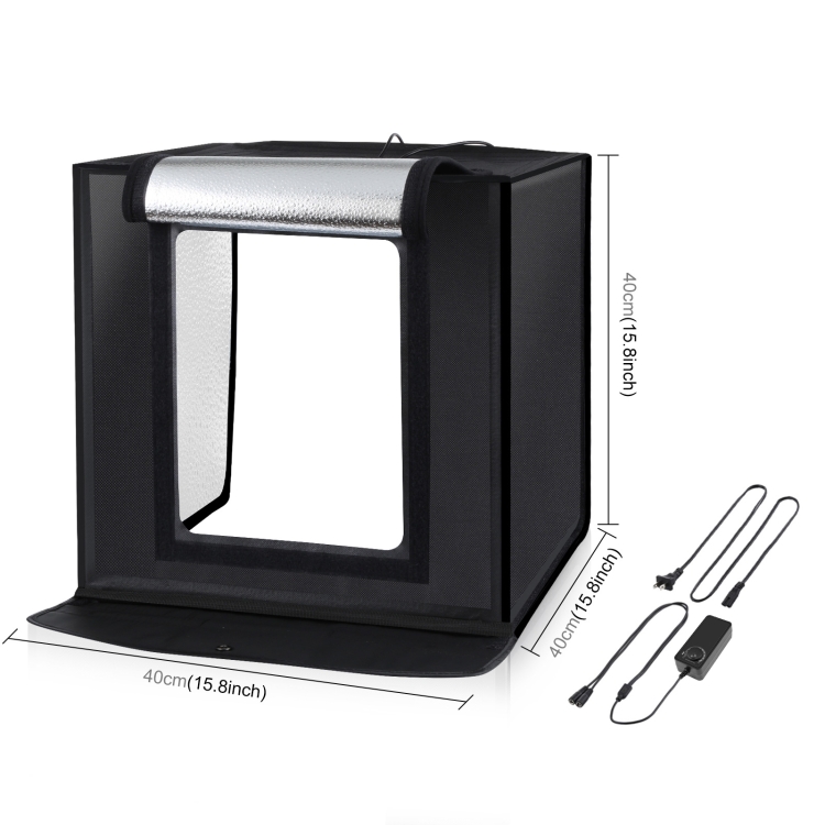 PULUZ 40cm Folding Portable 24W 5500K White Light Dimmable Photo Lighting Studio Shooting Tent Box Kit with 6 Colors (Black, Orange, White, Red, Green, Blue) Backdrops