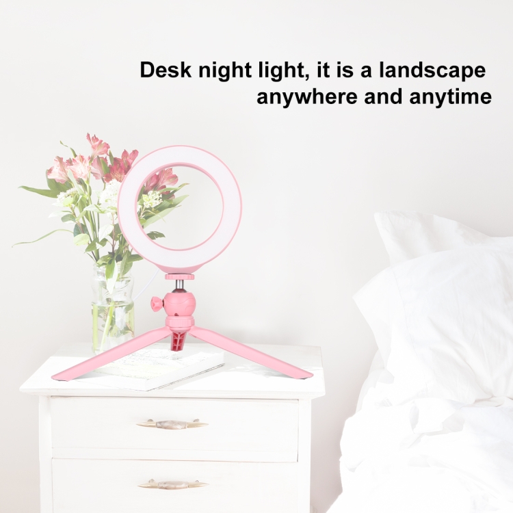 PULUZ 6.2 inch 16cm Light + Desktop Tripod Mount USB 3 Modes Dimmable LED Ring Vlogging Selfie Photography Video Lights with Cold Shoe Tripod Ball Head