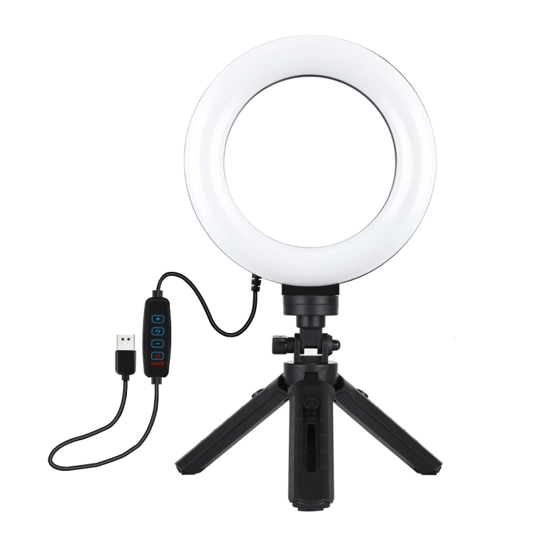 PULUZ 6.2 inch 16cm USB 3 Modes Dimmable LED Ring Vlogging Photography Video Lights + Pocket Tripod Mount Kit with Cold Shoe Tripod Ball Head