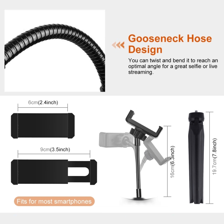 1. LED ring light can be mounted on the holder and take it anywhere, it can also be removed from the stand at any time, the tripod ball head can 360 degree rotating can free to adjust to any angle.