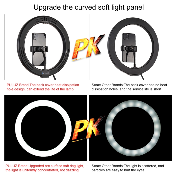 PULUZ 7.9 inch 20cm Ring Curved Light + Desktop Arm Stand USB 3 Modes Dimmable Dual Color Temperature LED Vlogging Selfie Photography Video Lights with Phone Clamp