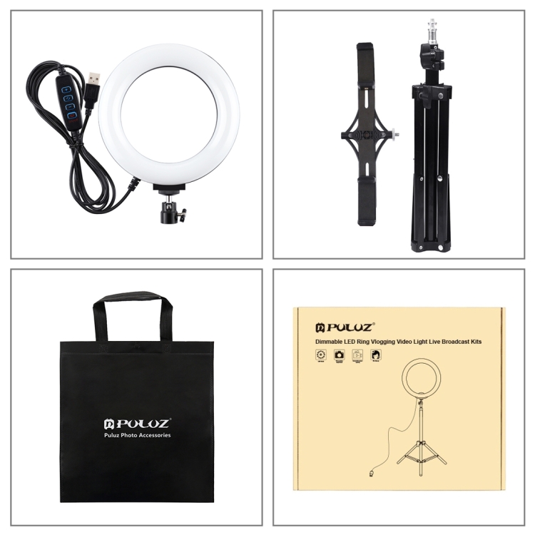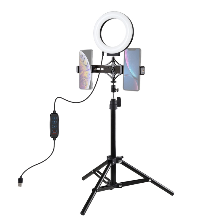 PULUZ 70cm Tripod Mount + Live Broadcast Dual Phone Bracket + 6.2 inch 16cm LED Ring Vlogging Video Light Kits