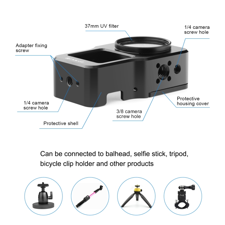 PULUZ CNC Aluminum Alloy Cage for DJI Action 2