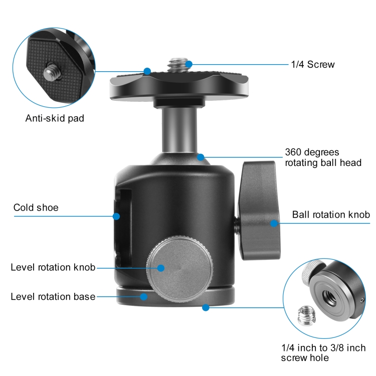 | Option | Metal Tripod Ball Head, 360 Panorama (Red), Mini 180 Degree Ball Head(Red), Mini 180 Degree Ball Head(Silver), Dual Cold Shoes, Single Cold Shoe, 360 Panorama, 1/4 inch Inner Screw, 3/8 inch Inner Screw, 1/4 inch Outer Screw, 3/8 inch Outer Screw, YT040 X4 |