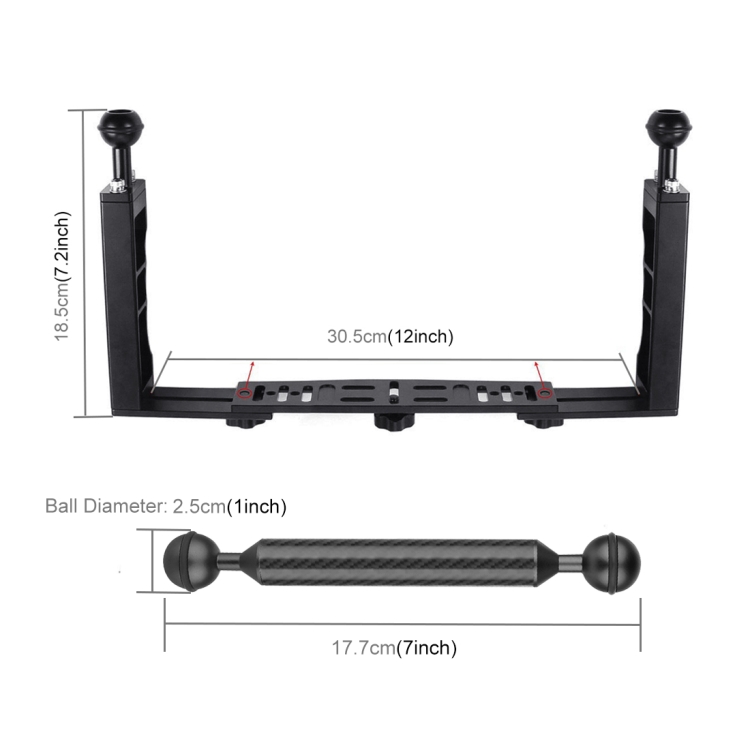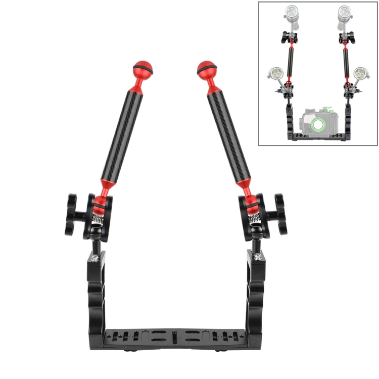 PULUZ Dual Handle Aluminium Tray Stabilizer with 2 x Dual Ball Aluminum Alloy Clamp & 2 x 7 inch Floating Arm for Underwater Camera Housings