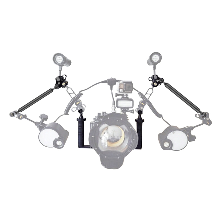 6. This double camera tray is lightweight and will work with almost any camera and video light combination (Some will require an additional adapter). The underwater tray will allow mounting any type of video light.