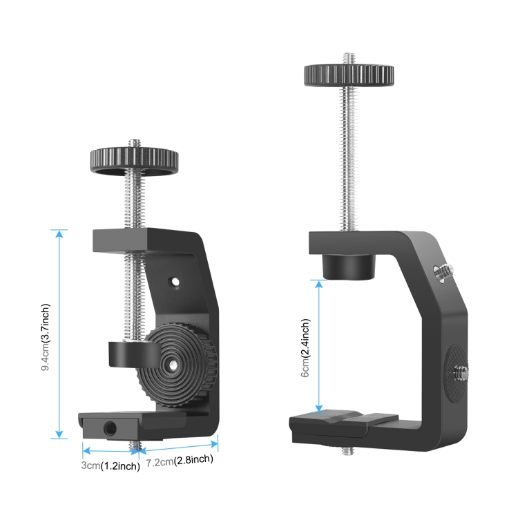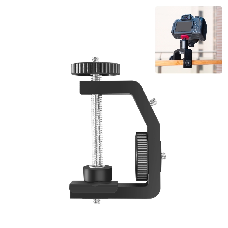 PULUZ Heavy Duty C Clamp Camera Clamp Mount with 1/4 inch Screw for GoPro Hero12 Black / Hero11 /10 /9 /8 /7 /6 /5, Insta360 Ace / Ace Pro, DJI Osmo Action 4 and Other Action Cameras