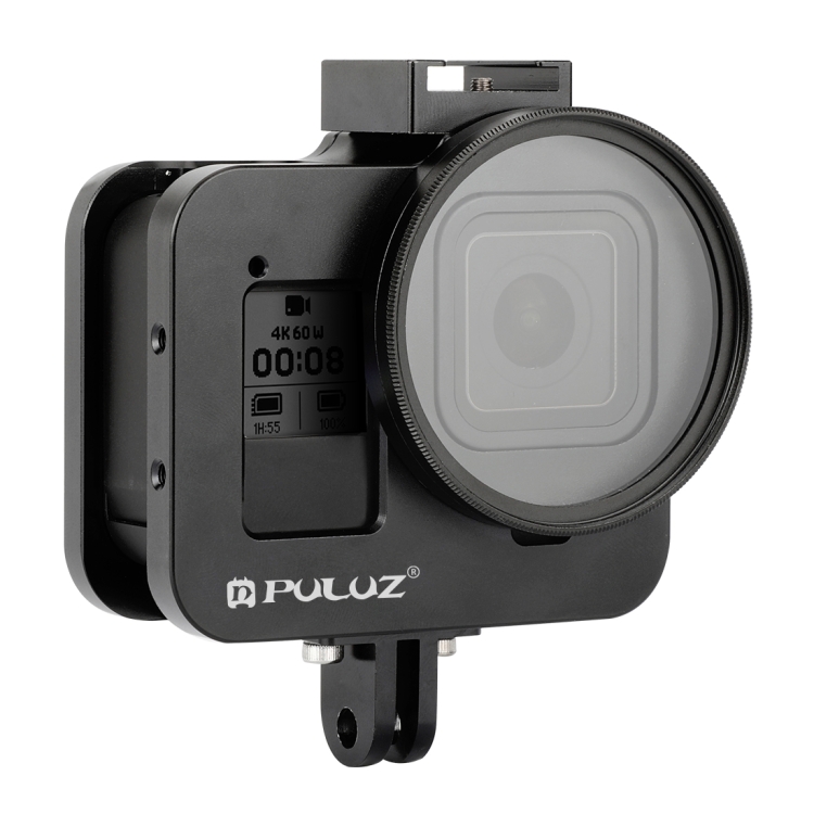 PULUZ Housing Shell CNC Aluminum Alloy Protective Cage with Insurance Frame & 52mm UV Lens for GoPro HERO8 Black
