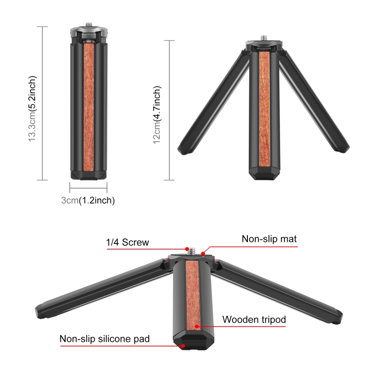 1. The mini tripod with a 1/4 screw is suitable for all cameras, smartphone holder, lights, stabilizer and other devices.
