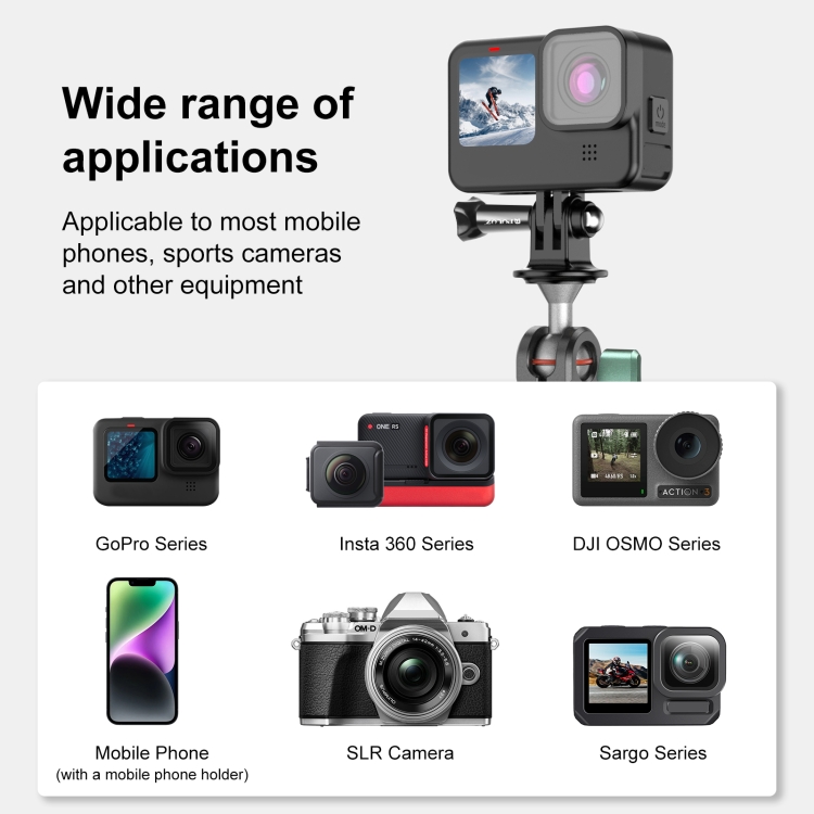 5. Strong load-bearing capacity, can be connected to sports cameras, mobile phones, mirrorless cameras, camping lights and other equipment.