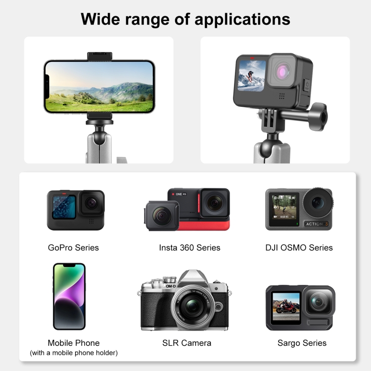 5. Widely used to install panoramic cameras, sports cameras, mobile phones, convenient for “first person” perspective shooting, can be used for live broadcast, selfie, etc.; can also be used to link and install car navigation