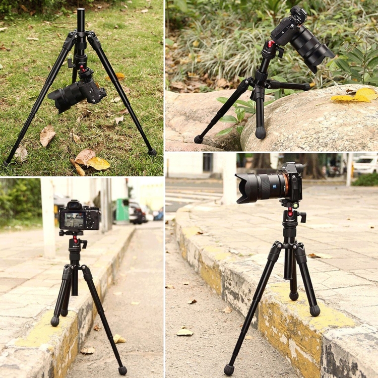 2. Tripod body is made of magnesium alloy and eco-friendly ABS plastic. Tripod feet made of soft, non-slip rubber make it easy to shoot on uneven surfaces.