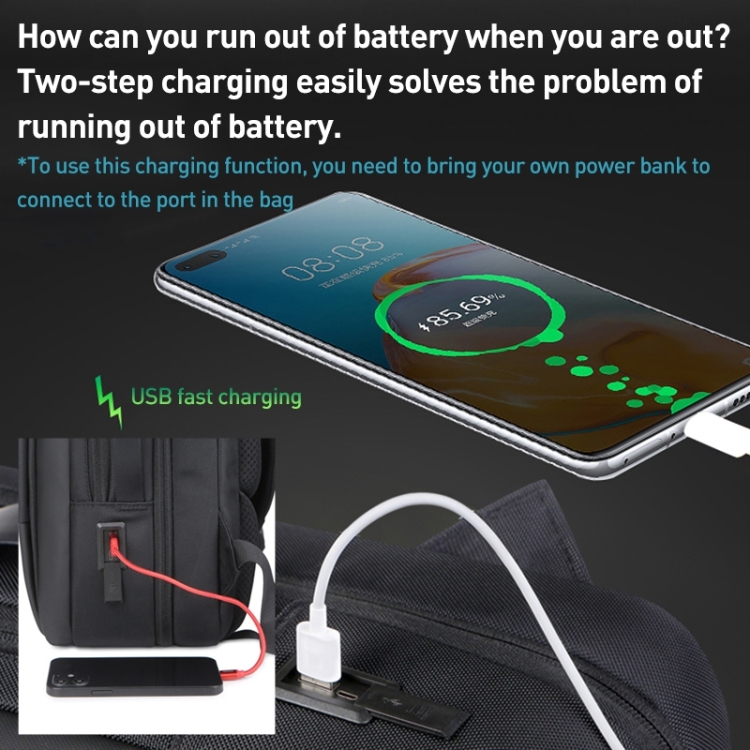 3. Use the built-in mobile power supply to connect the USB port in the bag to charge your mobile phone, which is easy to use.