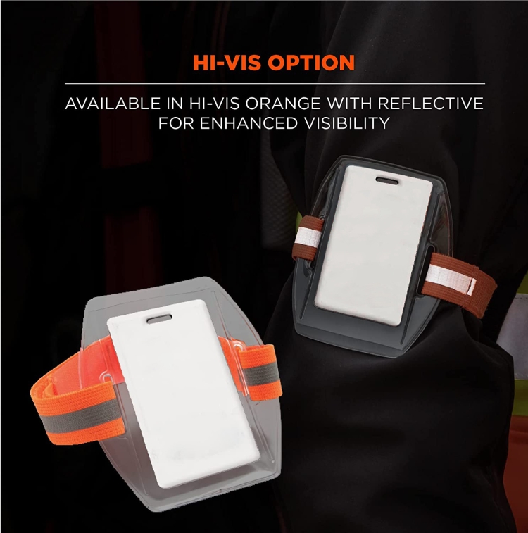 PVC Soft Plastic Card Holder Polyester Reflective Wristband Badge Card Holder Arm Adjustable ID Badge