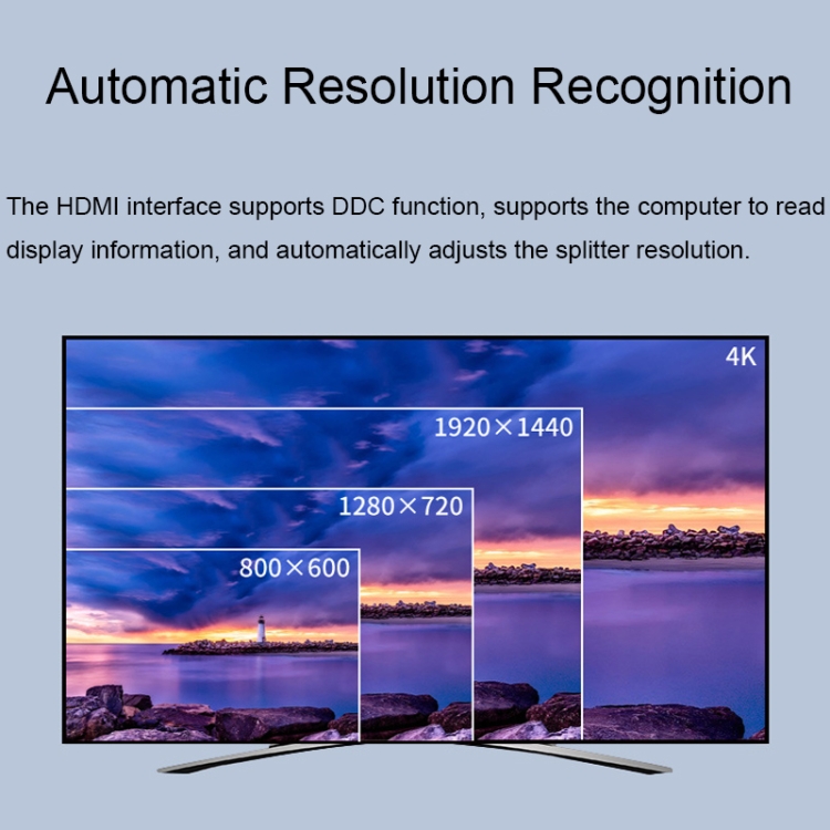 1. The HDMI interface supports DDC function, supports the computer to read display information, and automatically adjusts the splitter resolution.