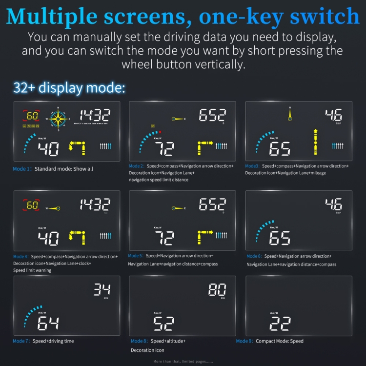 10. Navigation Lane: use with the navigation function of mobile app, display the lane of the vehicle
