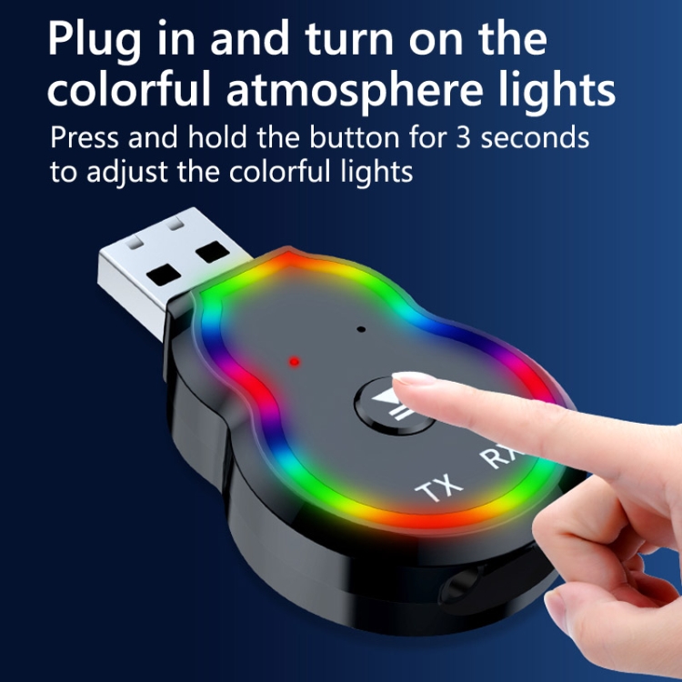9. Plug in the long press button for three seconds to turn on the colorful atmosphere light