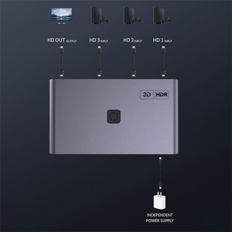 Q301 4K / 60hz HD Video Aluminum Alloy Adapter 3 Input 1 Output HDMI Switcher