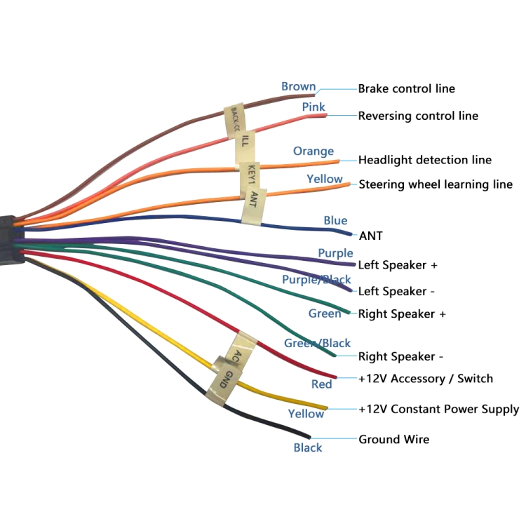 4. Support reversing camera input function (no camera): input the reversing video signal from the corresponding port, connect the reversing camera, and automatically switch to the reversing visual state