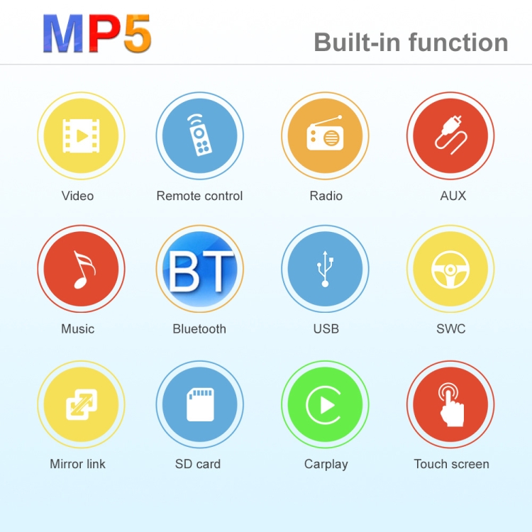 4. FM Radio: You can listen to real-time traffic, news broadcasts, weather forecasts, etc… FM receiver 18 preset storage function