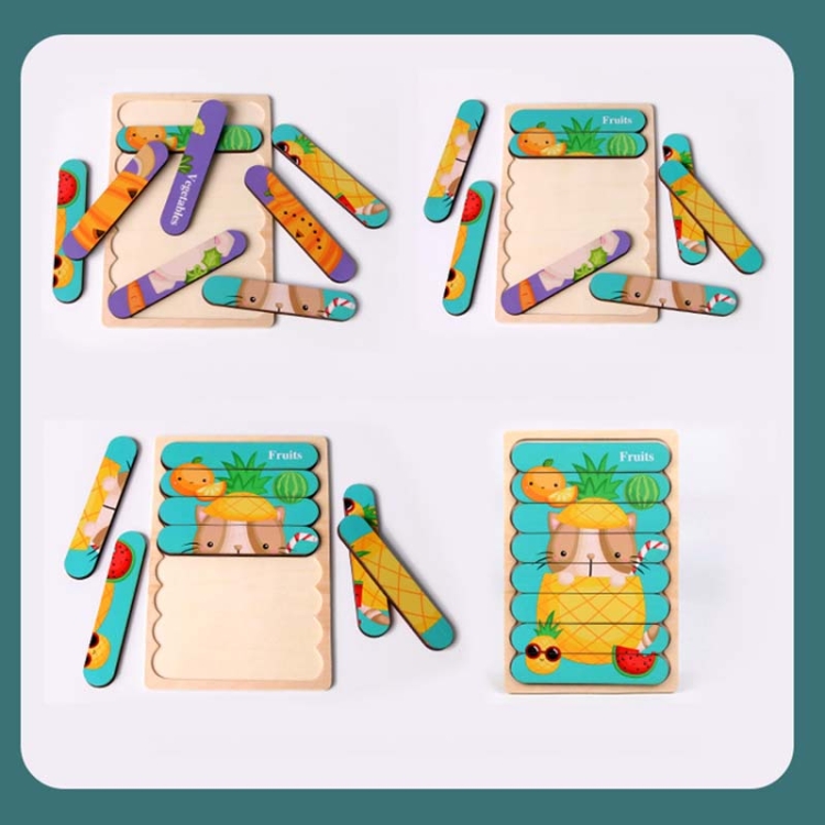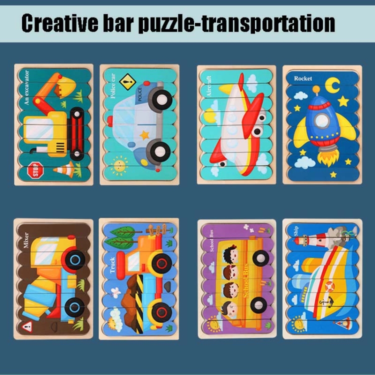 QBT01 Children Double-Sided Wooden Puzzle Bar Puzzle Toy