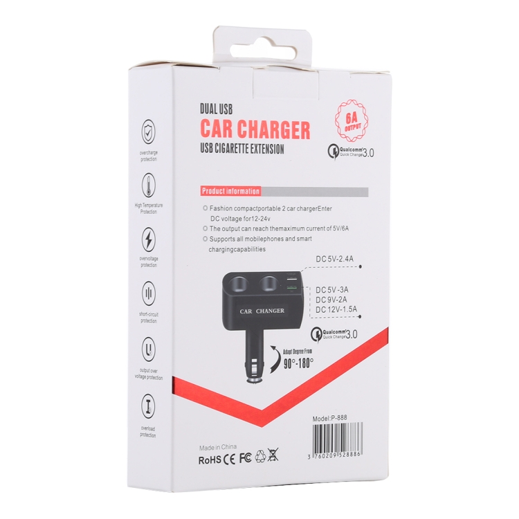 1. Multifunctional car charging splitter-convert your car cigarette lighter from 1 to 2 car split sockets, and provide 2 USB ports for all smart phones, tablets, and GPS devices.