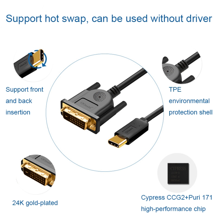 QGeeM QG-UA18 1920x1080P USB-C/Type-C To DVI Video Cable, Length: