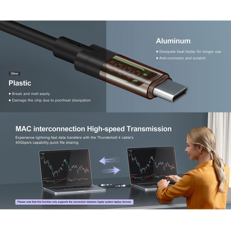 QGeeM USB4 Type-C PD 240W Fast Charging Cable With Digital Display, 40Gbps Data Transfer, 8K 60Hz Video Output For Laptop/Phone/Tablet