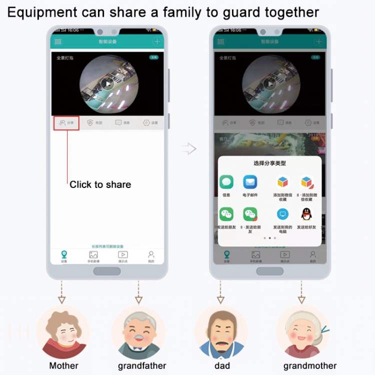 6. Two-way voice intercom, mobile alarm information push, login via WeChat