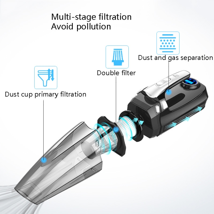 8. Functions: Vacuuming, inflating, lighting, measuring tire pressure