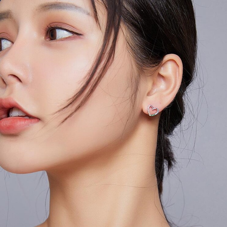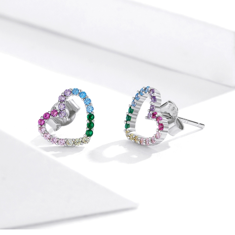 Rainbow Earrings Sterling Silver S925 Heart-shaped Zircon Girls Accessories