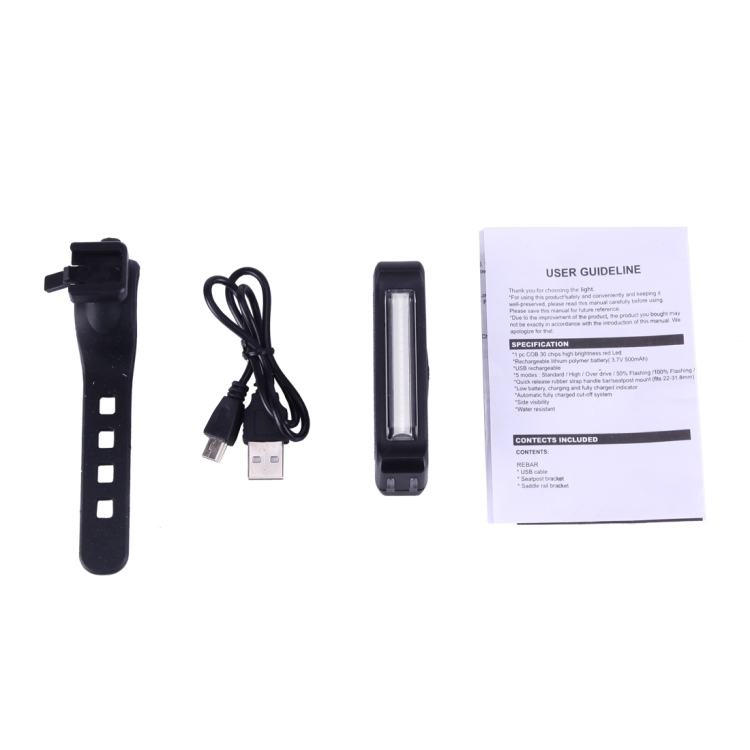RAYPAL RPL-2261 100LM Red Light COB LED USB Rechargeable 6 Modes Bicycle Rear Light Warning Light with Handlebar Mount
