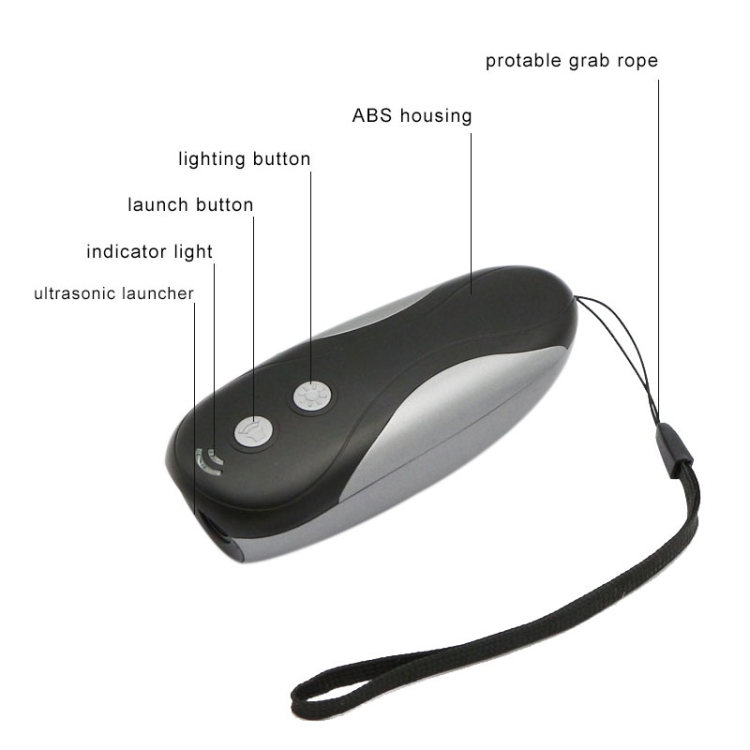 4. The energy of ultrasound is about 125dB/30cm, and strong white light of 2800mcd, which can produce strong stimulation to dogs and cats (the human ears will not hear), and it will cause uncomfortable and unbearable interference to animals, and this The harsh sound will become more serious when the animal approaches, making the dog feel unsuitable and panic and flee in panic.