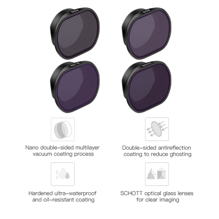 | Option | UV Filter, CPL Filter, ND4 Filter, ND8 Filter, ND16 Filter, ND32 Filter, 4 in 1 ND Filter, 5 in 1 CPL+ND Filter, 6 in 1 UV+CPL+ND Filter |