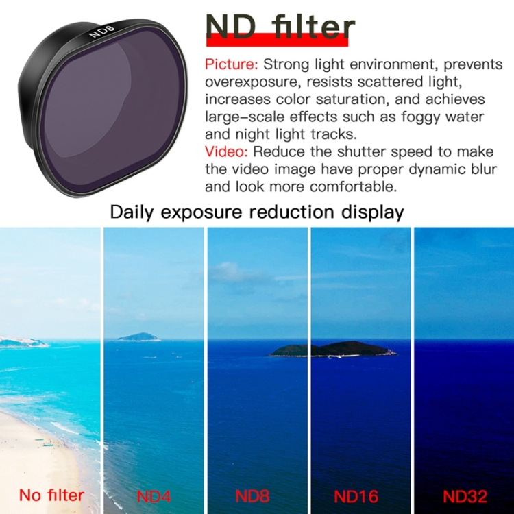 1. ND filter can prevent excessive exposure, make the picture have appropriate dynamic blur, more comfortable and smooth