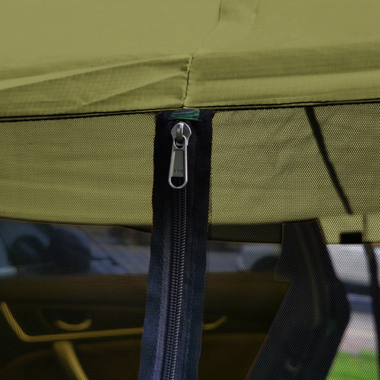 9. According to the actual model, the tent can be built on the side door of the car by using the weaving loops and binding ropes on the tent.