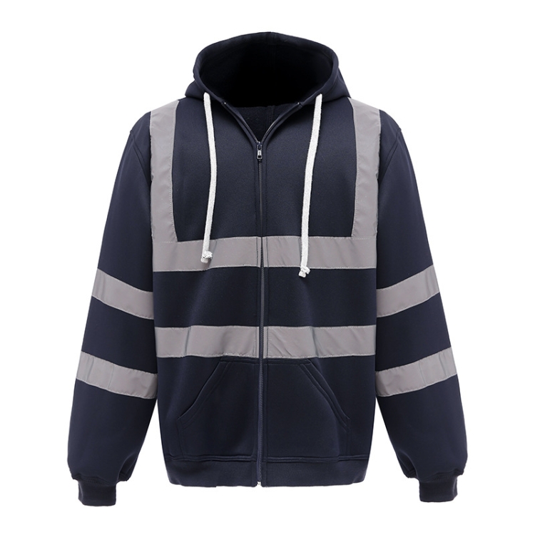 Reflective Hooded Zipper Sweatshirt Outdoor Sports Fleece Reflective Clothing