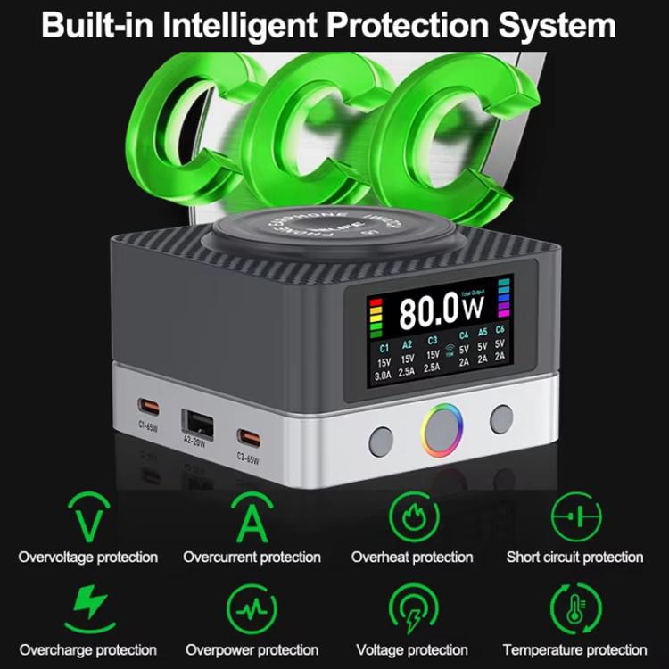 RELIFE Q7 Smart 6-Port 15W Wireless Charger Compatible With Multiple Charging Protocols