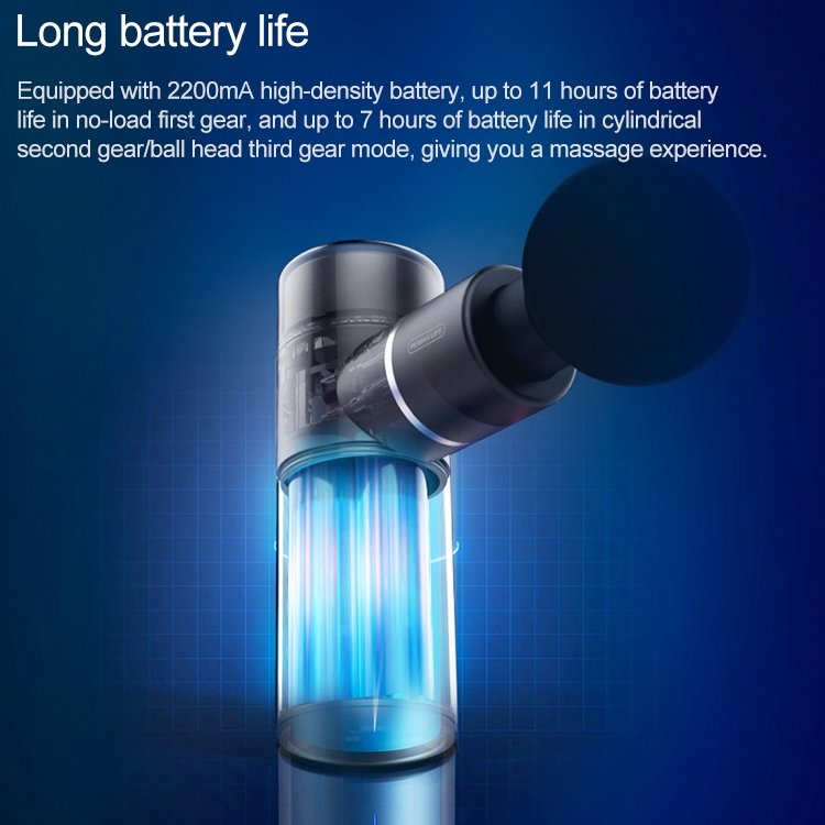 5. 11-hour long battery life: equipped with 2200mA high-density battery, the battery life is up to 11 hours in the first gear without load, and the battery life is up to 7 hours in the cylindrical head second gear/ball head third gear mode, giving you a massage experience.