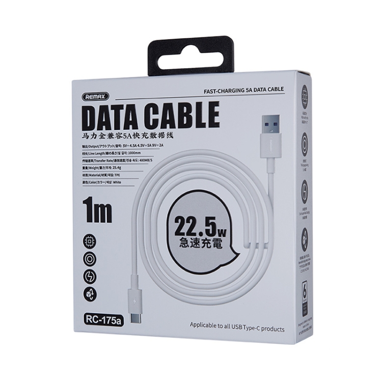 REMAX Marlik Series RC-175a 22.5W 5A USB to USB-C / Type-C Interface Fully Compatible Fast Charging Data Cable, Cable Length: 1m