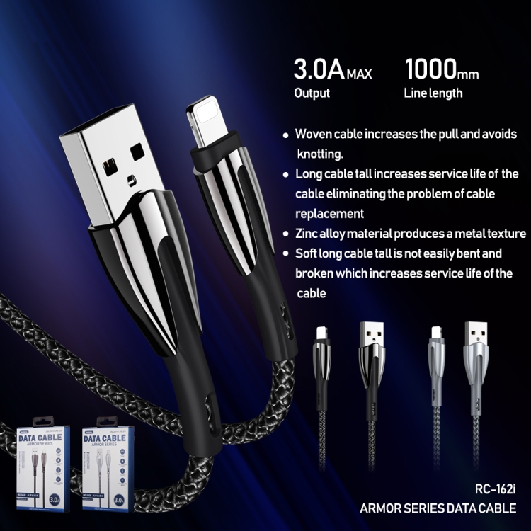 REMAX RC-162i Armor Series 3A USB to 8 Pin Charging Cable, Cable Length: 1m, 8 Pin