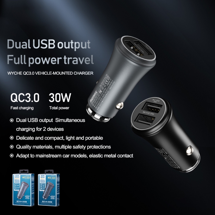 REMAX RCC-223 Vitor Series 30W QC 3.0 Dual USB Interface Car Charger