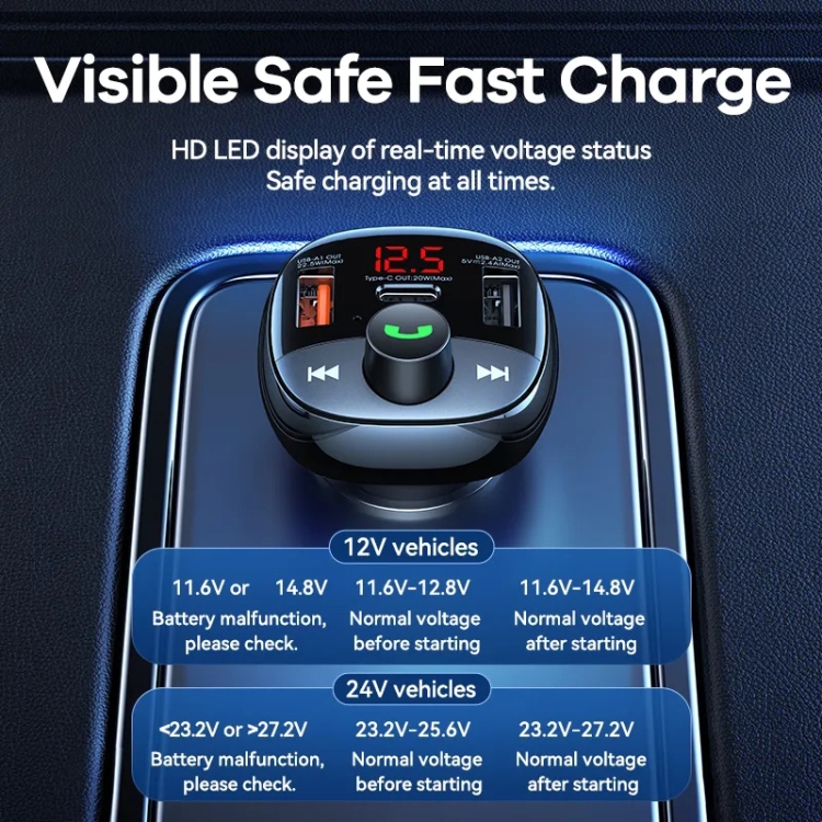 4. Visible safe fast charger: HD LED display of real-time voltage status, safe charging at all times.